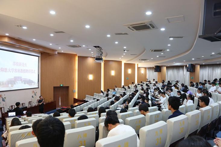 在会上,张文副教授向邵俊新先生颁发了客座教授聘任书,两人合影留念。之后,邵俊新教授就受聘发表了感言。