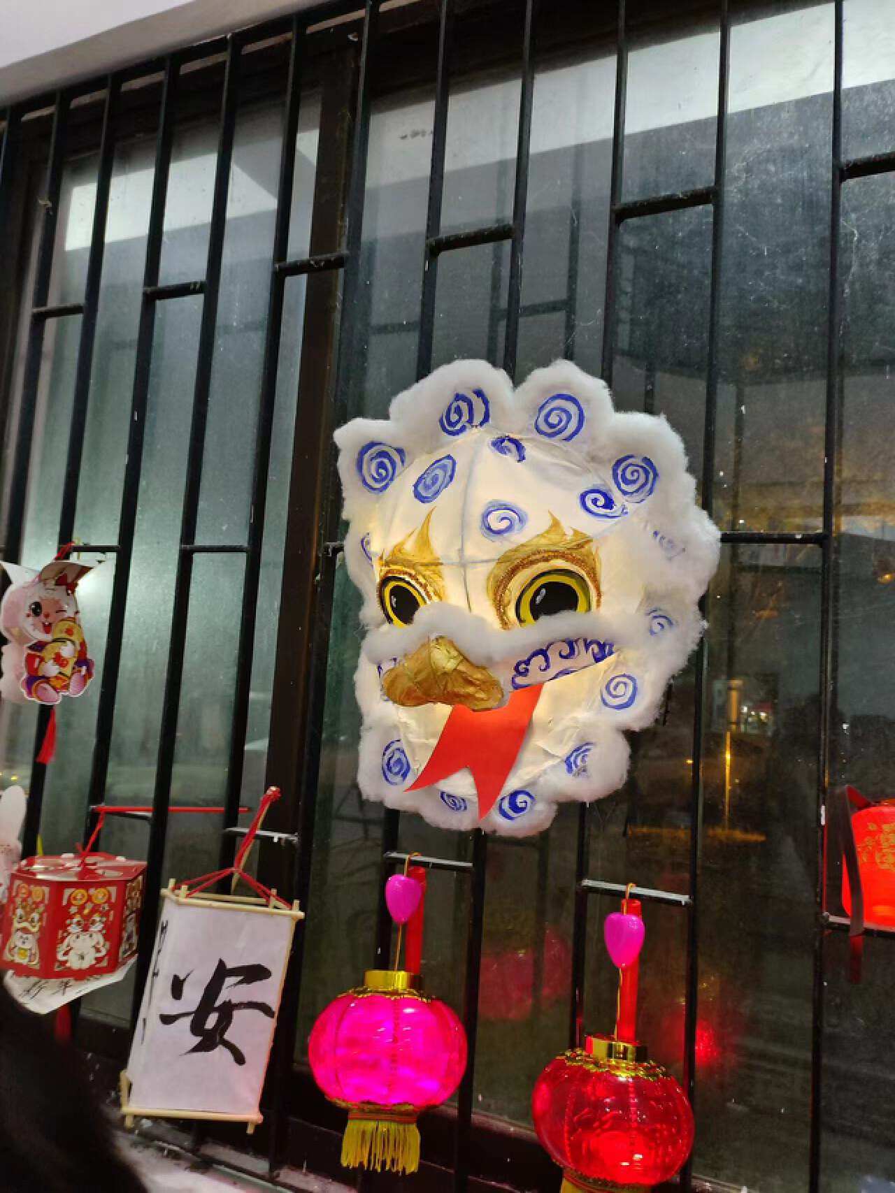 狮子灯的制作过程略微复杂和困难,制作时间也长达半个月,即使步骤繁杂,细致,负责的同学未曾放弃,最终完成了这个美轮美奂的狮子灯。更可喜可贺的是在学校的评选中获得了“最佳人气花灯”的美誉。