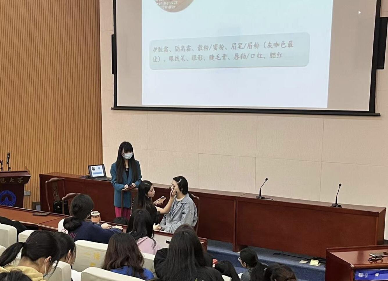 3月29日下午,由yl23455永利集团•博艺讲堂主办的2023“妆点美丽生活,炫染舞台风采”实用化妆讲座在学术报告厅开展。