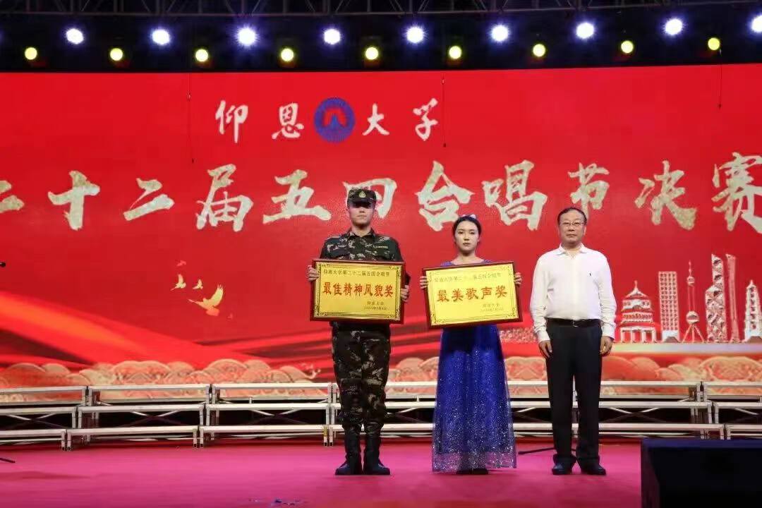 我院积极响应号召,作为表演单位参与了此次五四合唱节,用实际行动为民族复兴的伟大目标献上自己的美好祝福。一首《萱草花》以物托情,借花喻人,将孩子对母亲的爱,千回百转表述得酣畅淋漓。《领航》在我院合唱团深情而嘹亮的演唱下,唱出了祖国的壮丽山河,唱出了青年一代对祖国的无限热爱,唱出了我们要强信念,感党恩,永远跟党走的决心。优美和谐的和声,声情并茂的演唱获得评委的一致认可,荣获“最美歌声奖”。