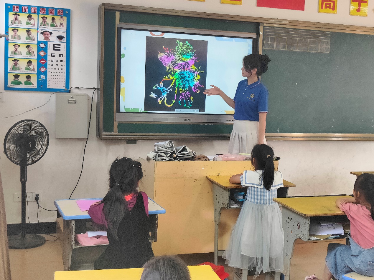 习近平总书记在全国教育大会上指出,要全面加强和改进学校美育,坚持以美育人、以文化人,提高学生审美和人文素养。美育是个体成长发育中不可或缺的部分。美育是指培养学生认识美、爱好美和创造美的能力的教育。这次的专业实践对珍山村学生来说,将不仅能够陶冶情操,提高素质,而且有助于开发智力,对于促进他们的全面发展具有不可替代的作用。(“青鸟义教”暑期实践队 图/文)