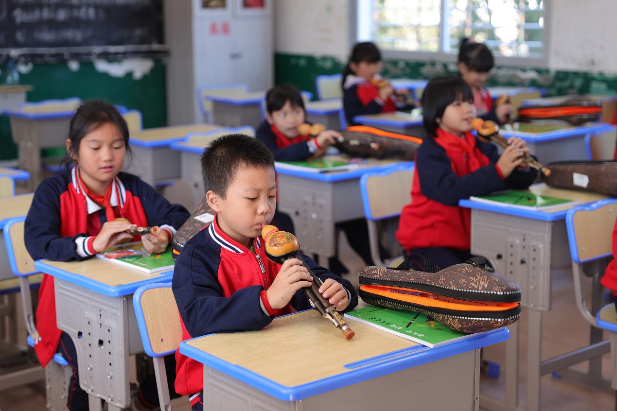 留守儿童学习葫芦丝