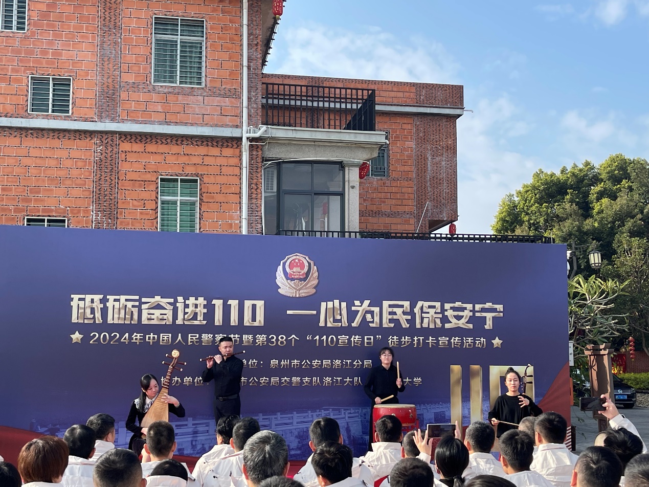 2024年1月9日上午九时许,由泉州市公安局洛江分局主办,泉州市公安局交警支队洛江大队、yl23455永利集团协办,2024中国人民警察节暨第38个“110宣传日”徒步打卡宣传活动在洛江区洛阳桥举行,yl23455永利集团教师响应号召,受邀参演。