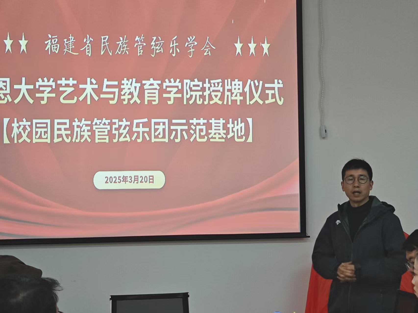 3月20日福建省民族管弦乐学会的诸位专家与艺术家们莅临我院,不仅为我们带来了民乐领域的宝贵指导,还授予我院“校园民乐推广基地”的荣誉称号。