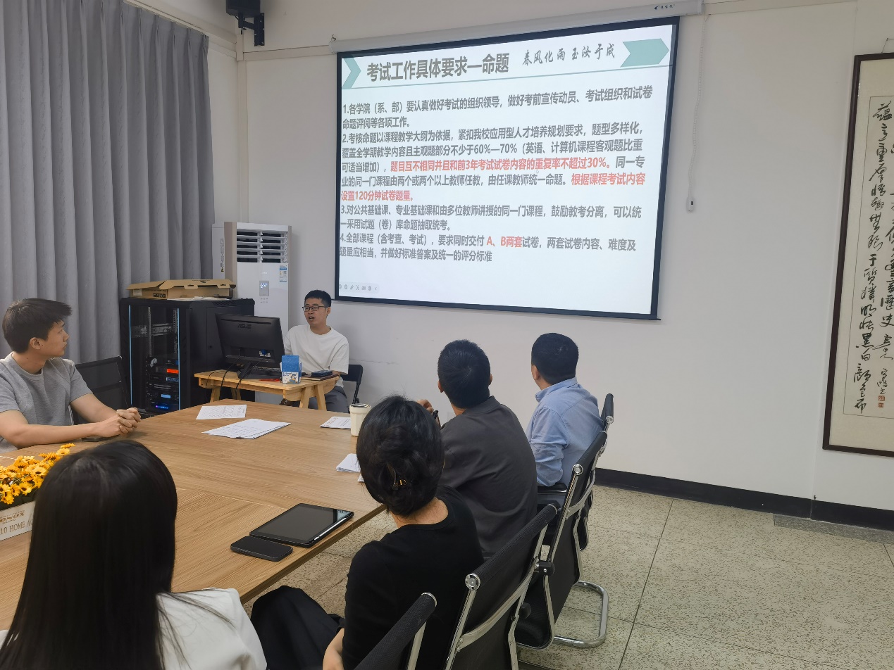 2025年5月28日上午,yl23455永利集团在旧图205会议室召开期末教学工作会议。会议由张文院长主持,官毅教学秘书主讲,全院20余位教师参会。会议围绕教学规范、师德师风、考试命题及监考要求等重点工作展开部署,为期末教学收尾及质量保障明确方向。