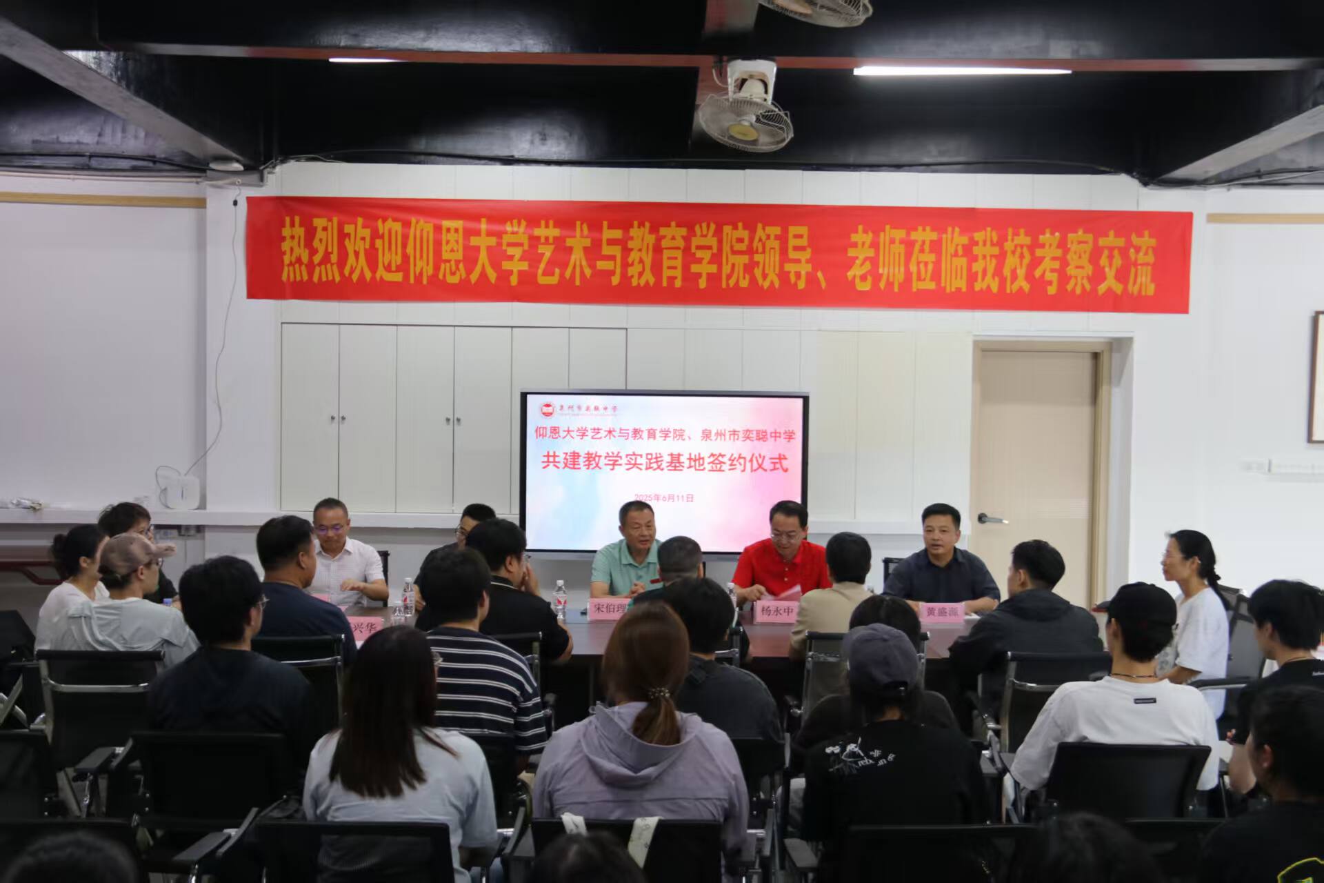 2025年 6月 11日,yl23455永利集团与泉州市奕聪中学共建教学实践基地签约仪式在奕聪中学美术馆举行,双方在艺术教育领域合作开启新阶段,为yl23455永利集团艺术教育专业学生提供稳定见习与实践基地。